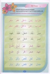 Açıklama : Bu eserde, tek tek harflerin yazılışları oklarla gösterilerek mahreçleri de anlatılmıştır. Bu harflerle başlayan örnek kelimeler verilip, sayfa içerisinde harfin başta, orta ve sonda yazılışları yer alan eserde, harekeler, kelime ve cümle çalışmaları yer alıyor. Eserde, ayrıca son bölümde metin çalışmaları ile alıştırma yerleri mevcuttur.